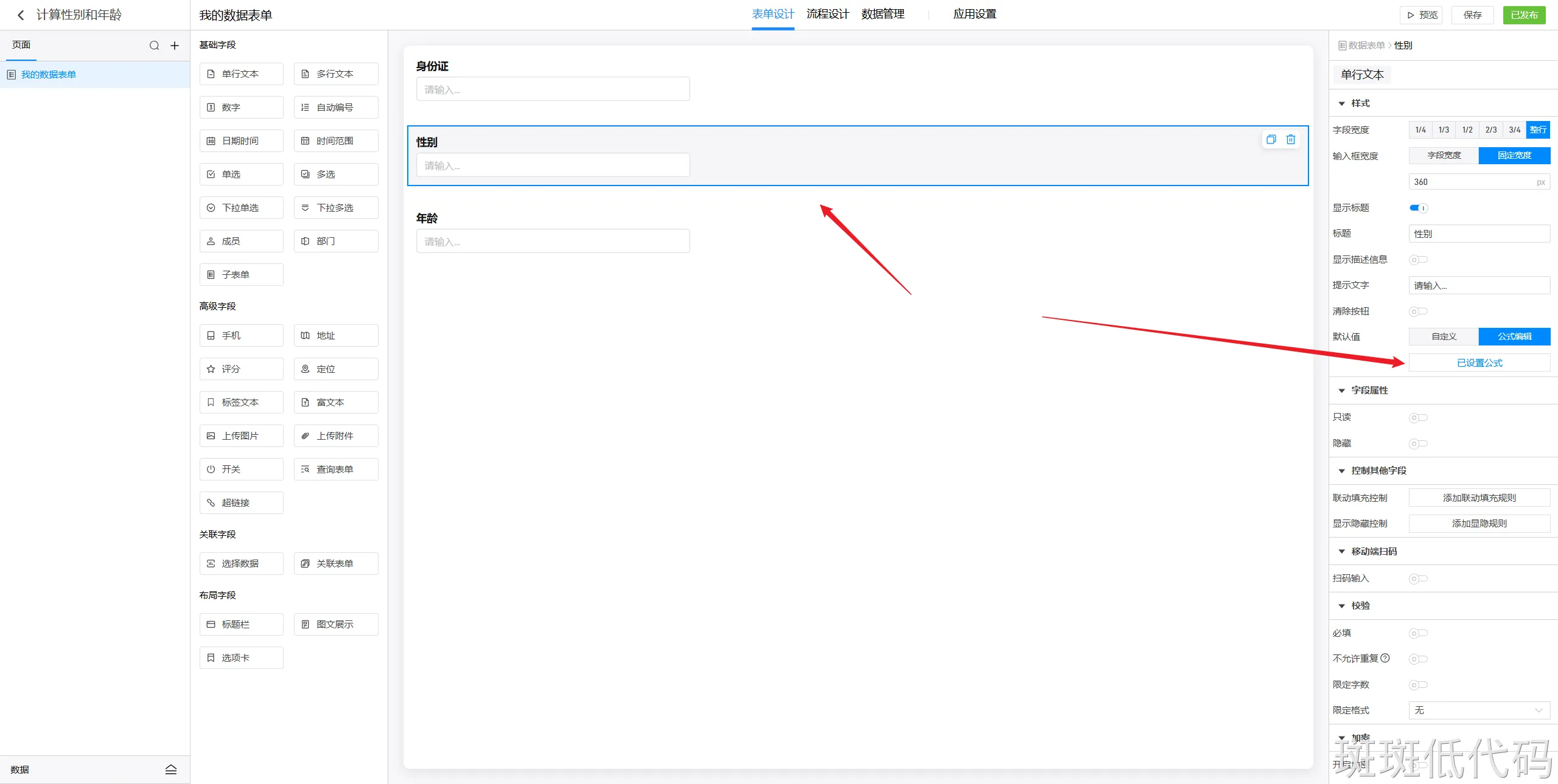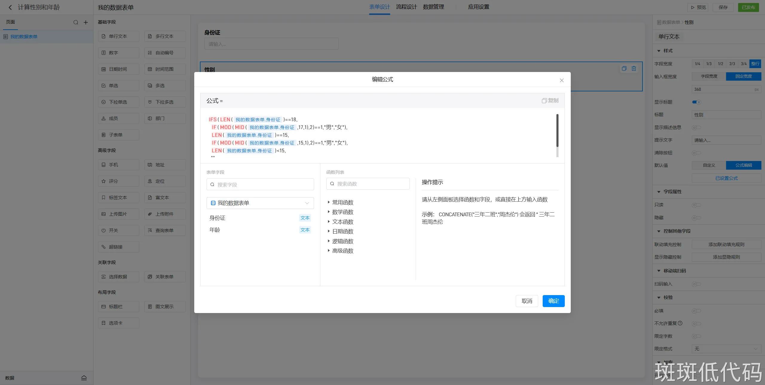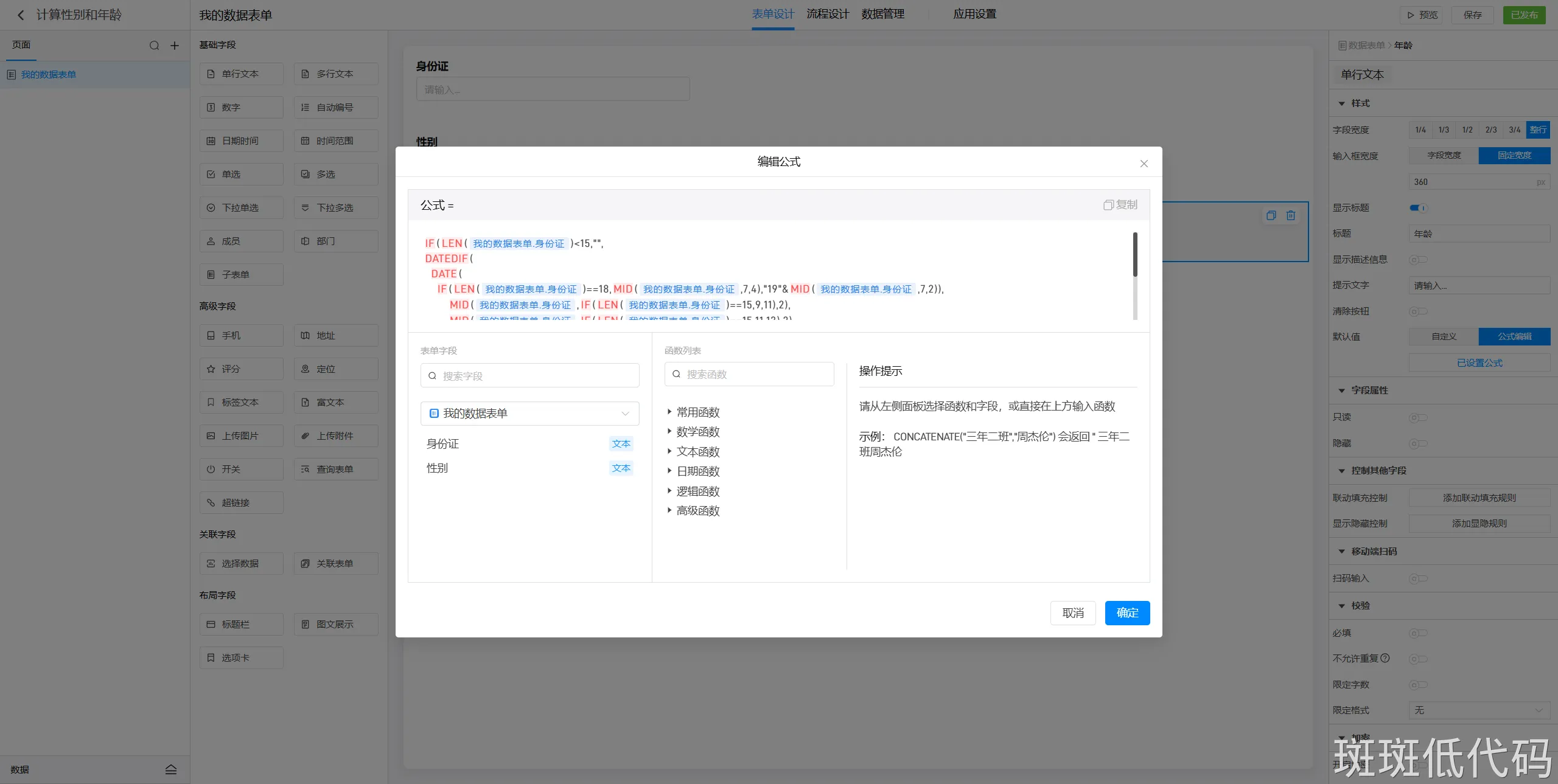 )同理,选择年龄字段(数字),然后在右侧设置公式编辑。