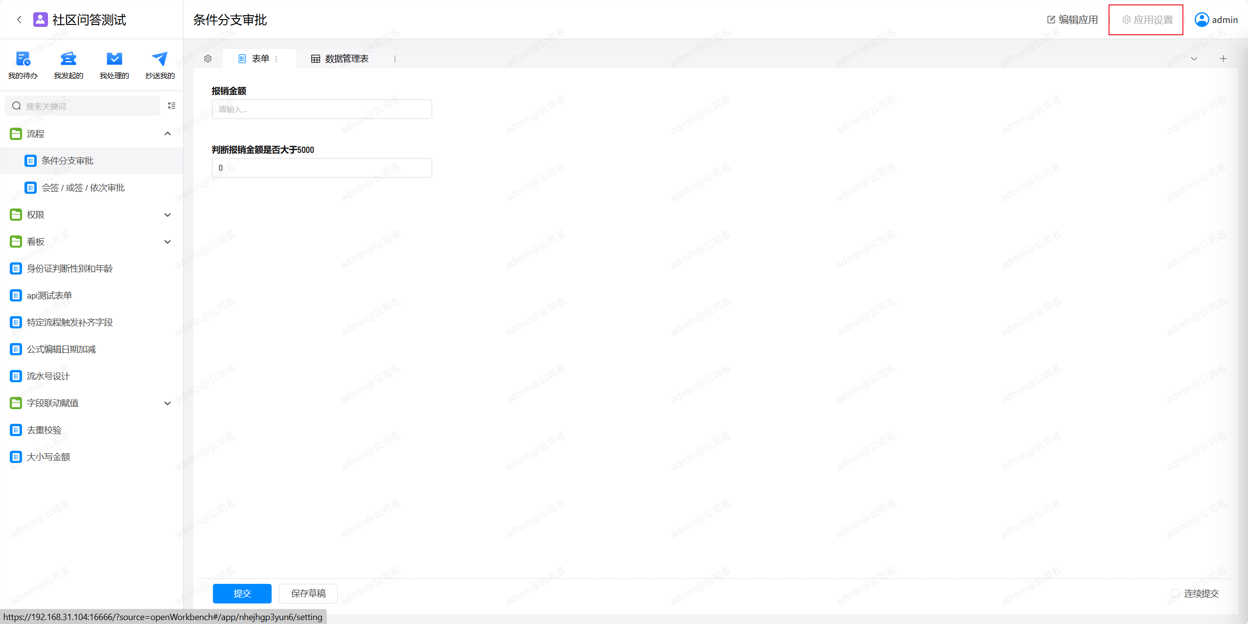 使用具有管理权限的账号进入工作台,点击要调整的应用: