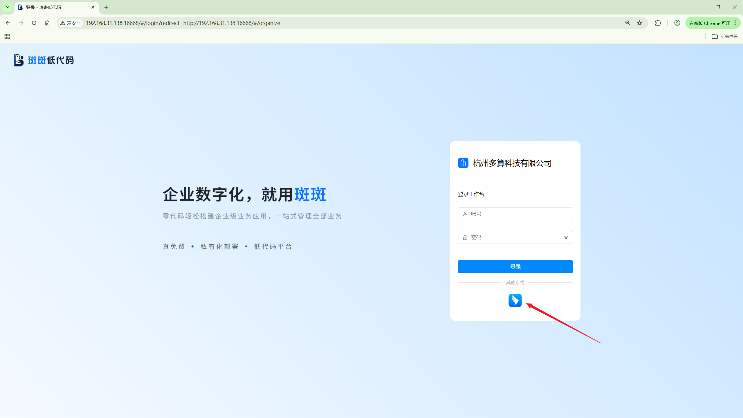 设置完成后就可以在登录时选择钉钉登录了。