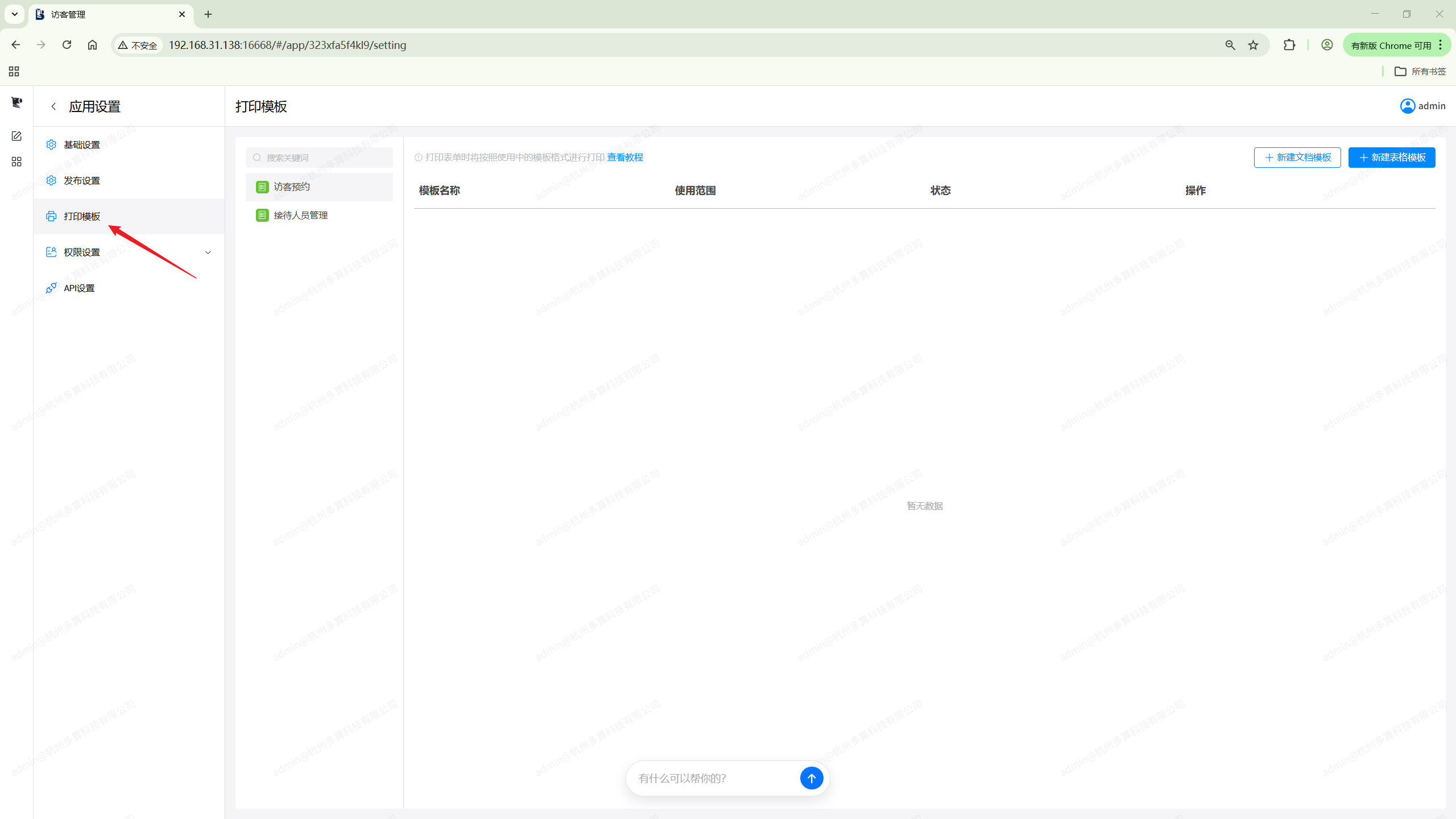 每个表单页面需要独立设置模板,设置完成之后可以在数据管理表页面中使用。