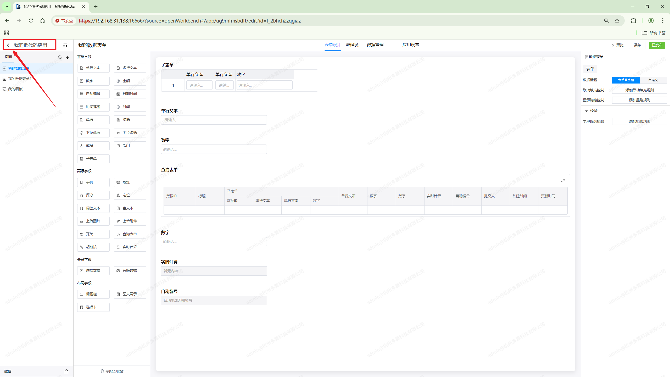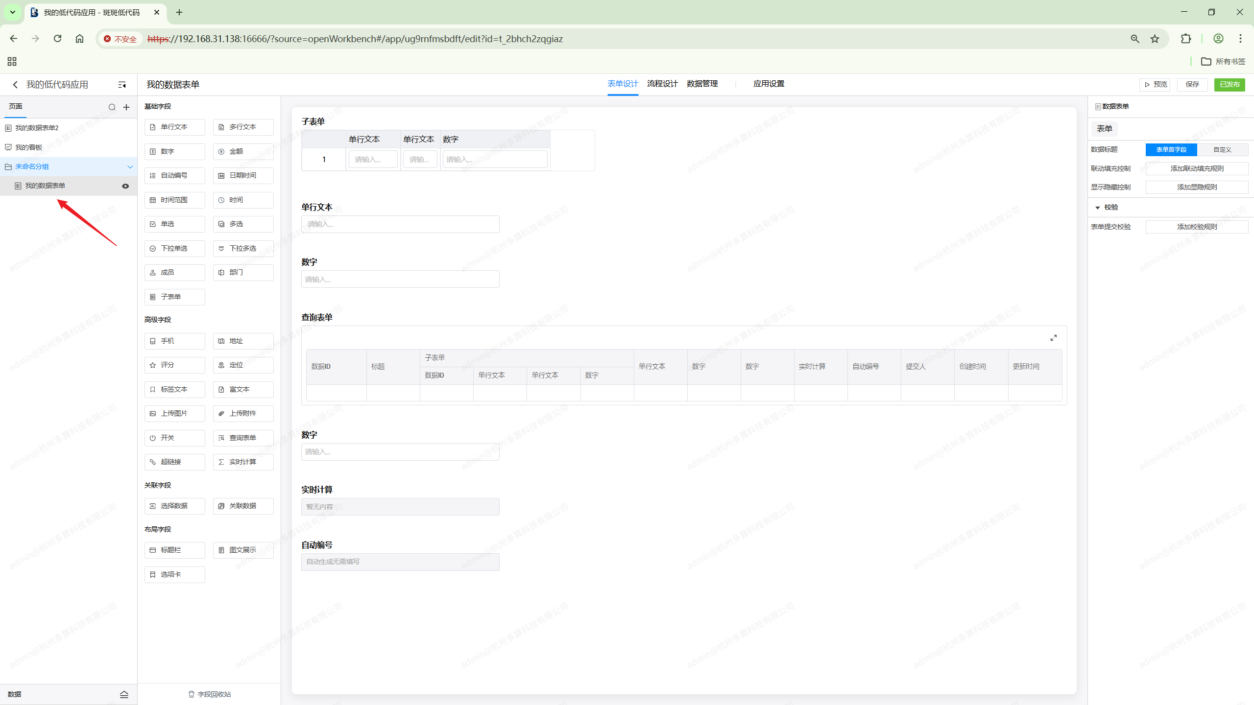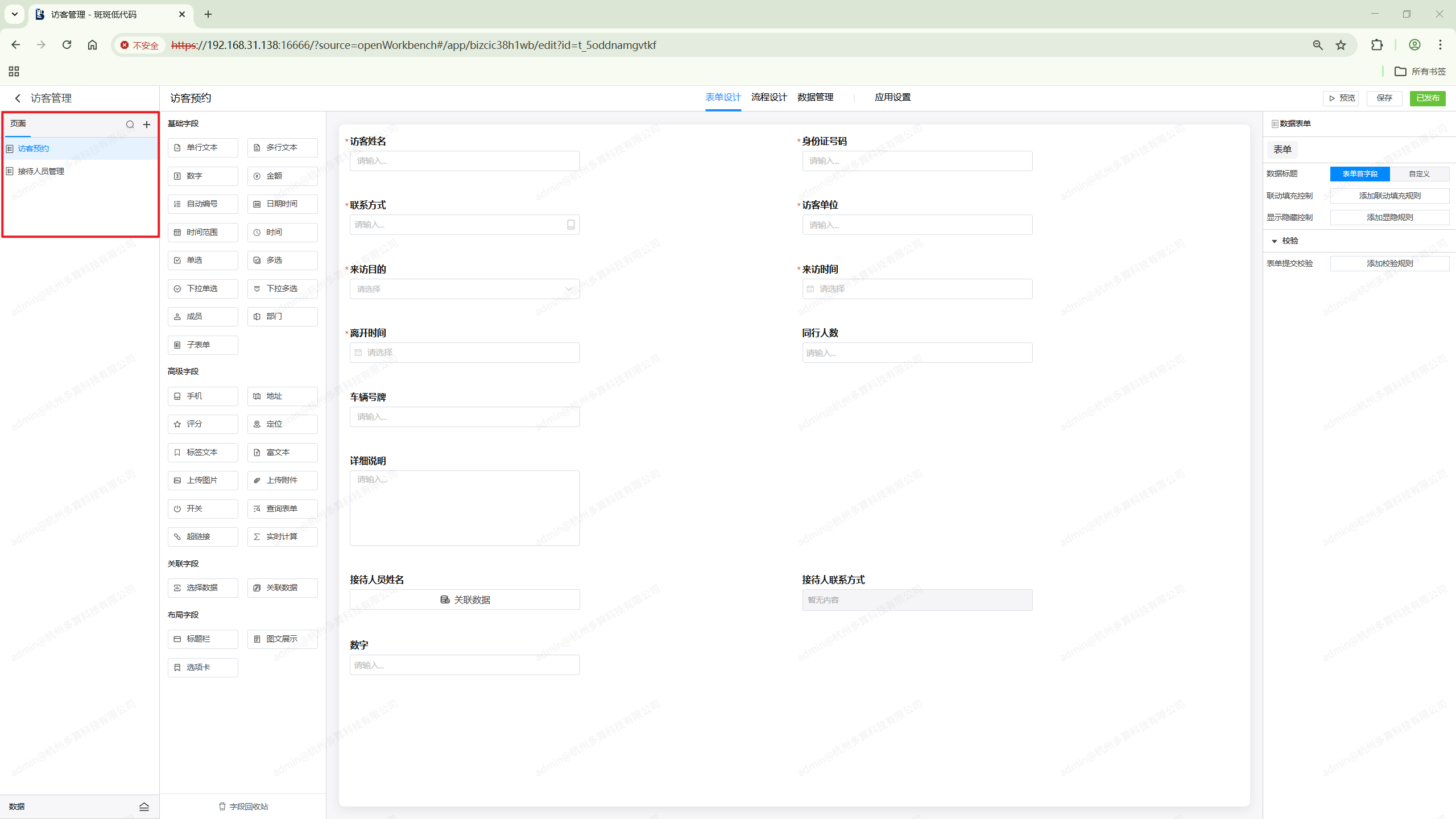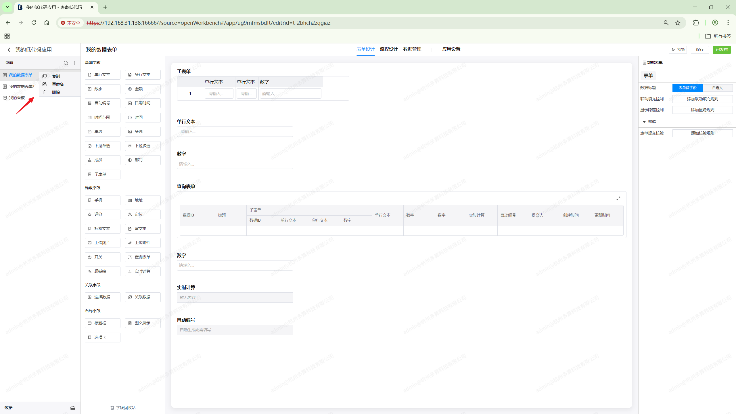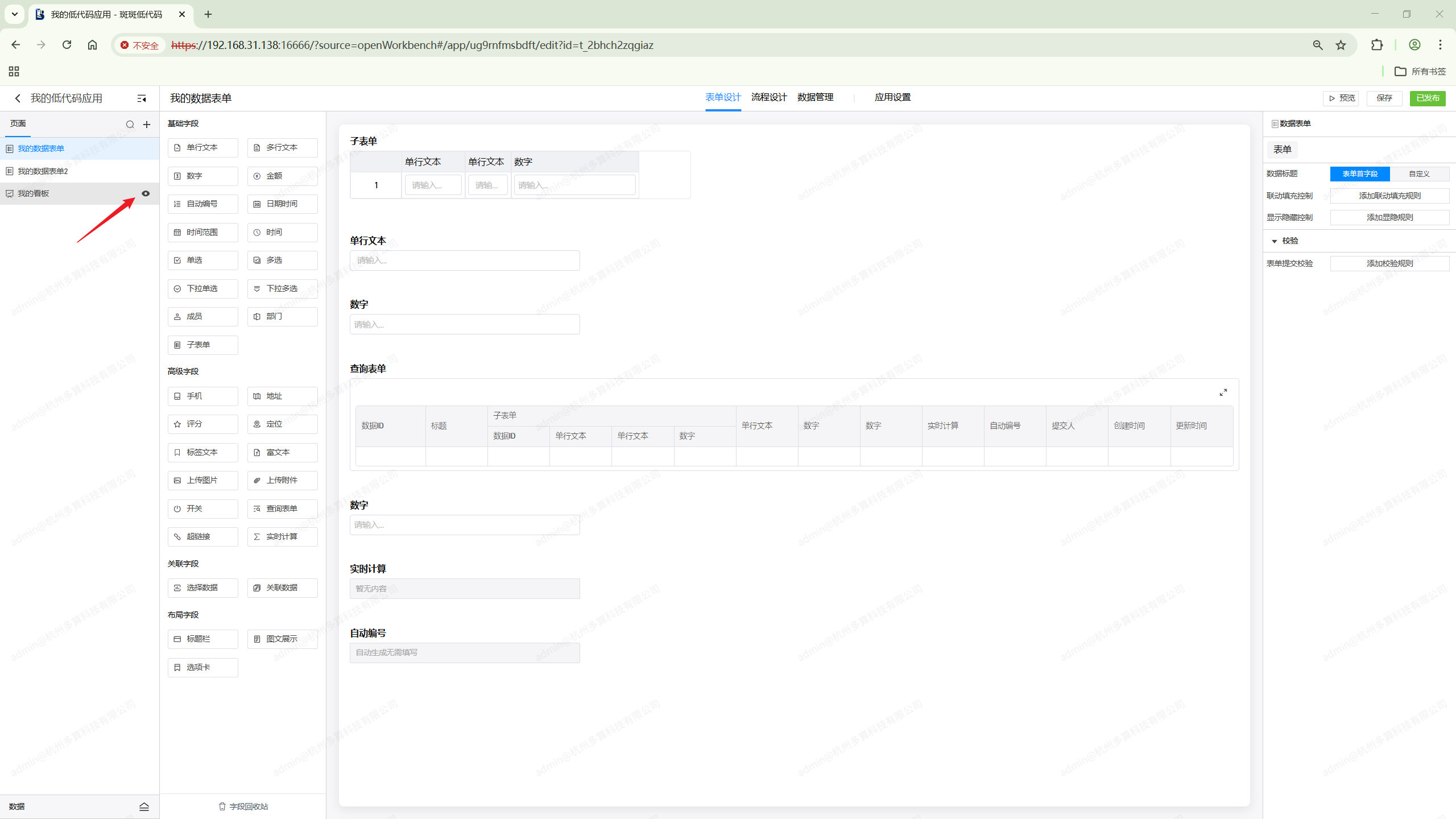 在左侧页面列表中,我们可以选择需要编辑的页面(表单和看板),然后在右侧画布中进行编辑,不同类型的页面编辑方式不同。