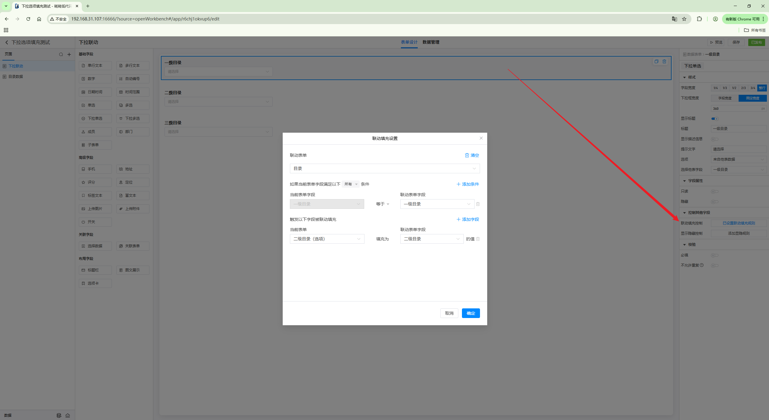 在表单上添加联动填充控制。