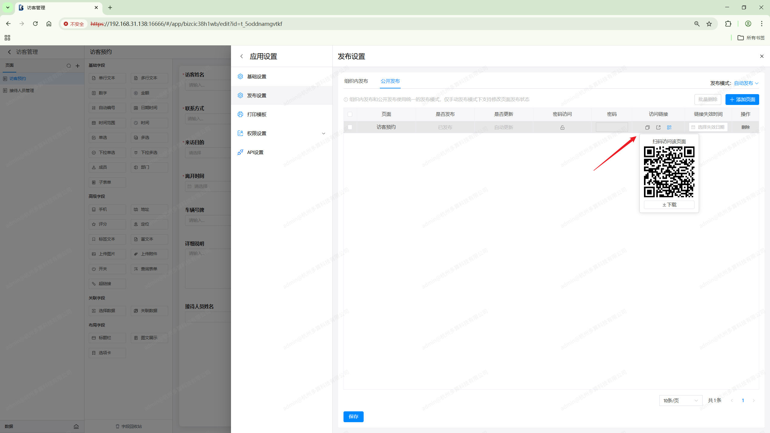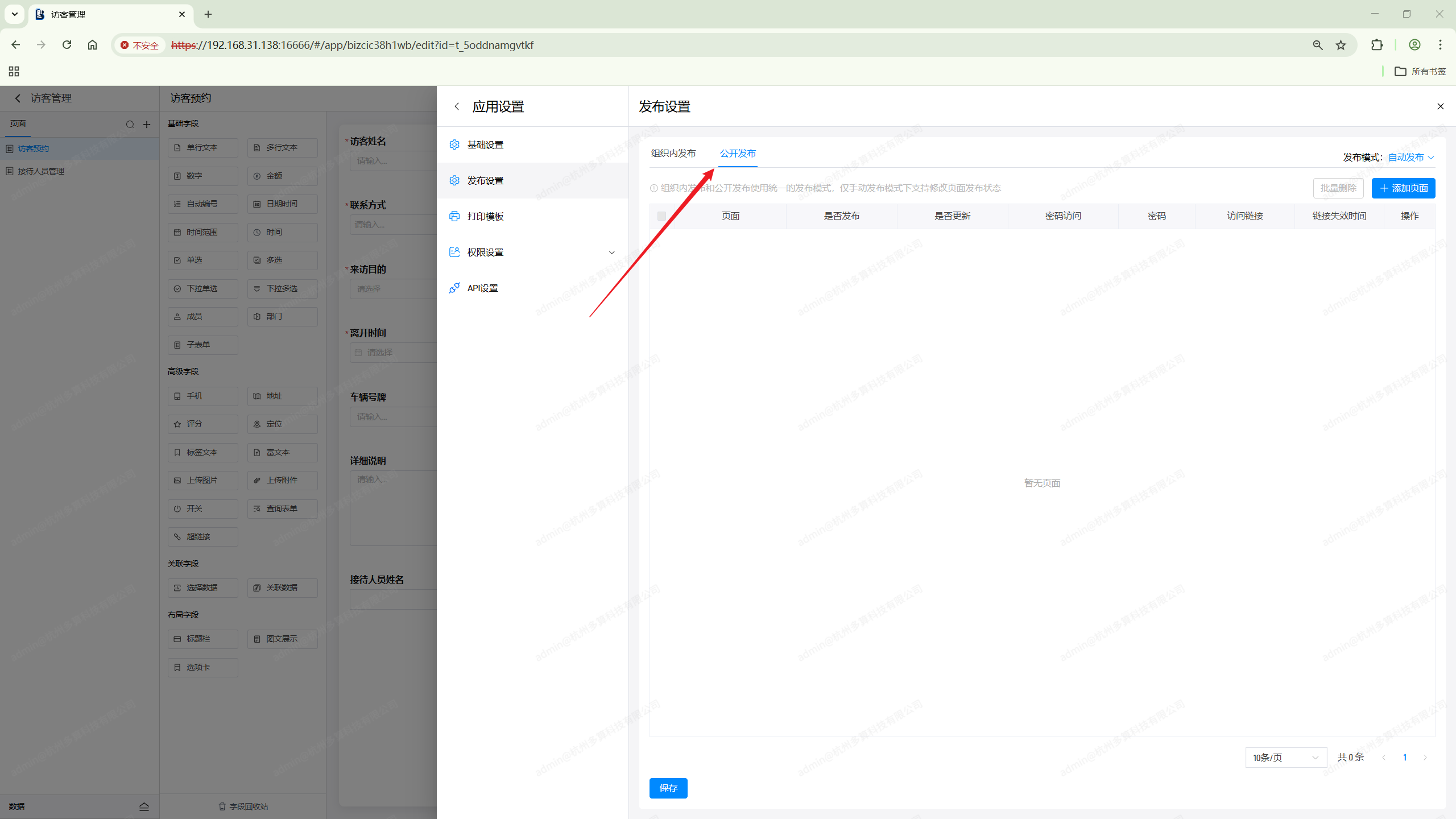 公开发布是让非组织内的成员可以通过打开发布链接,无需登录就可以直接访问应用中的页面。(比如公开的问卷调查)