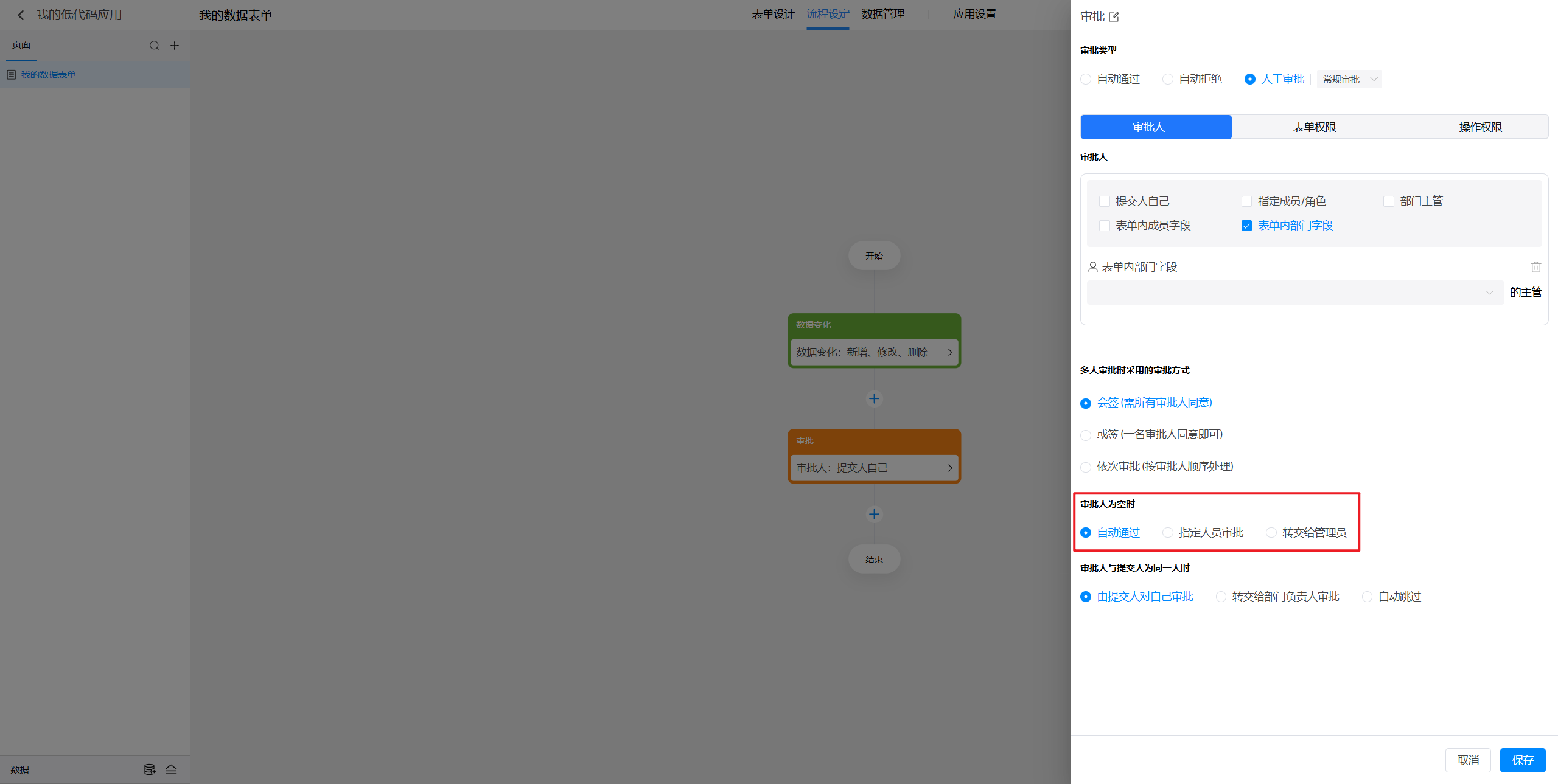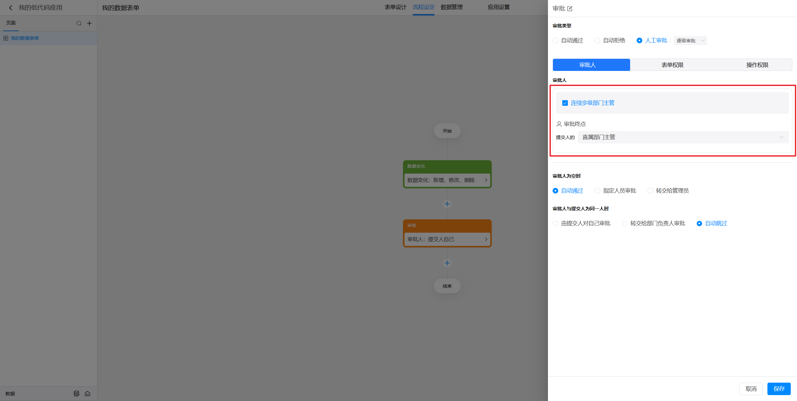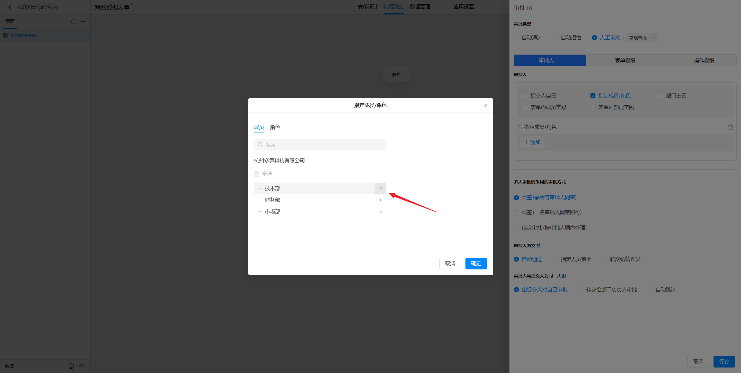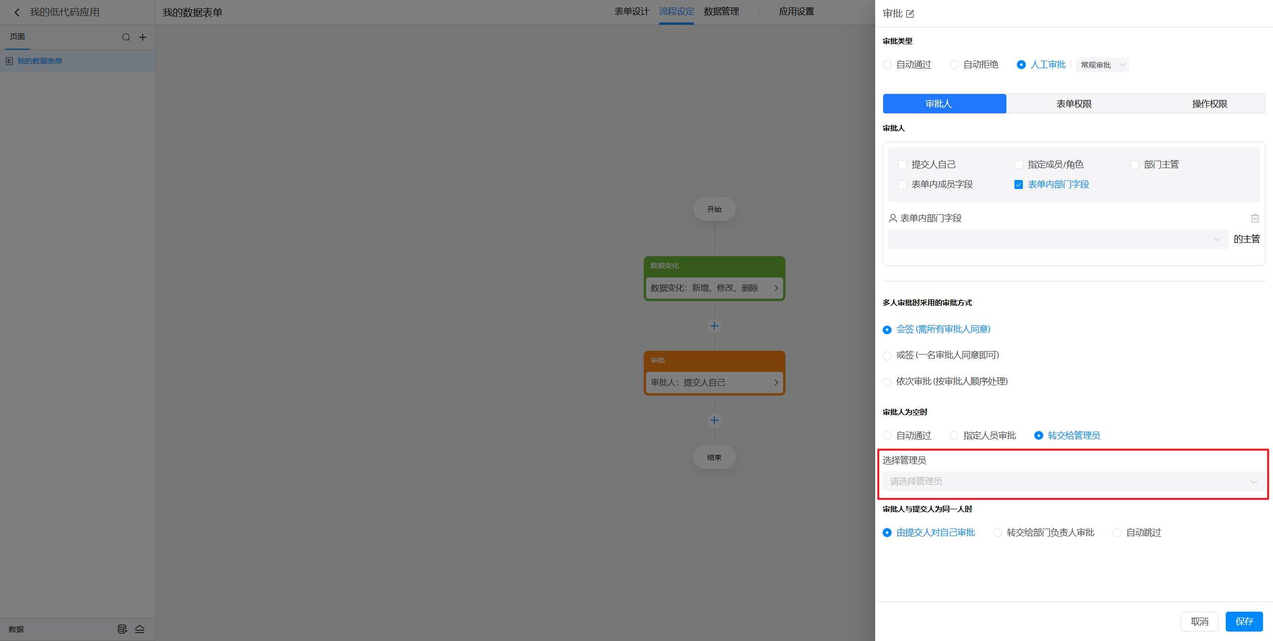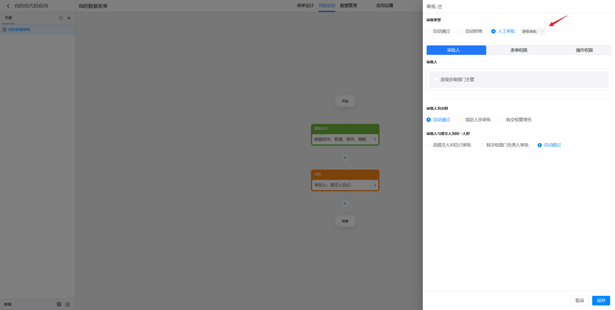 点击选中审批节点后,就可以在右侧对节点进行设置。