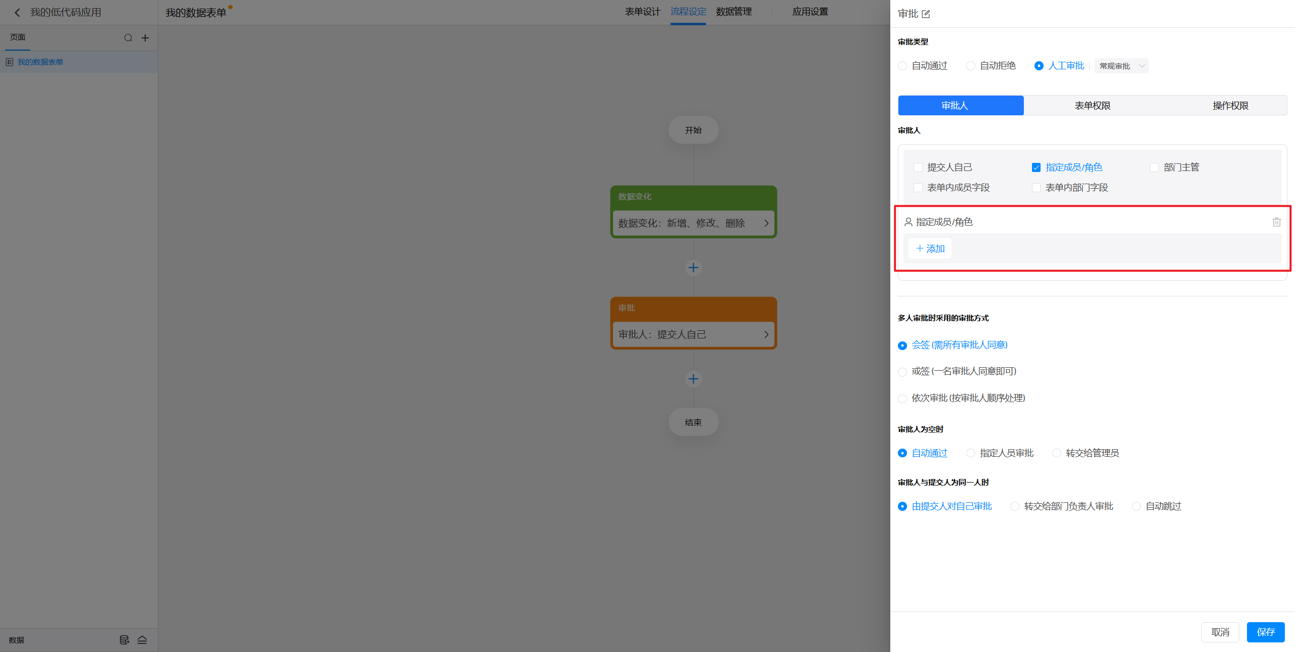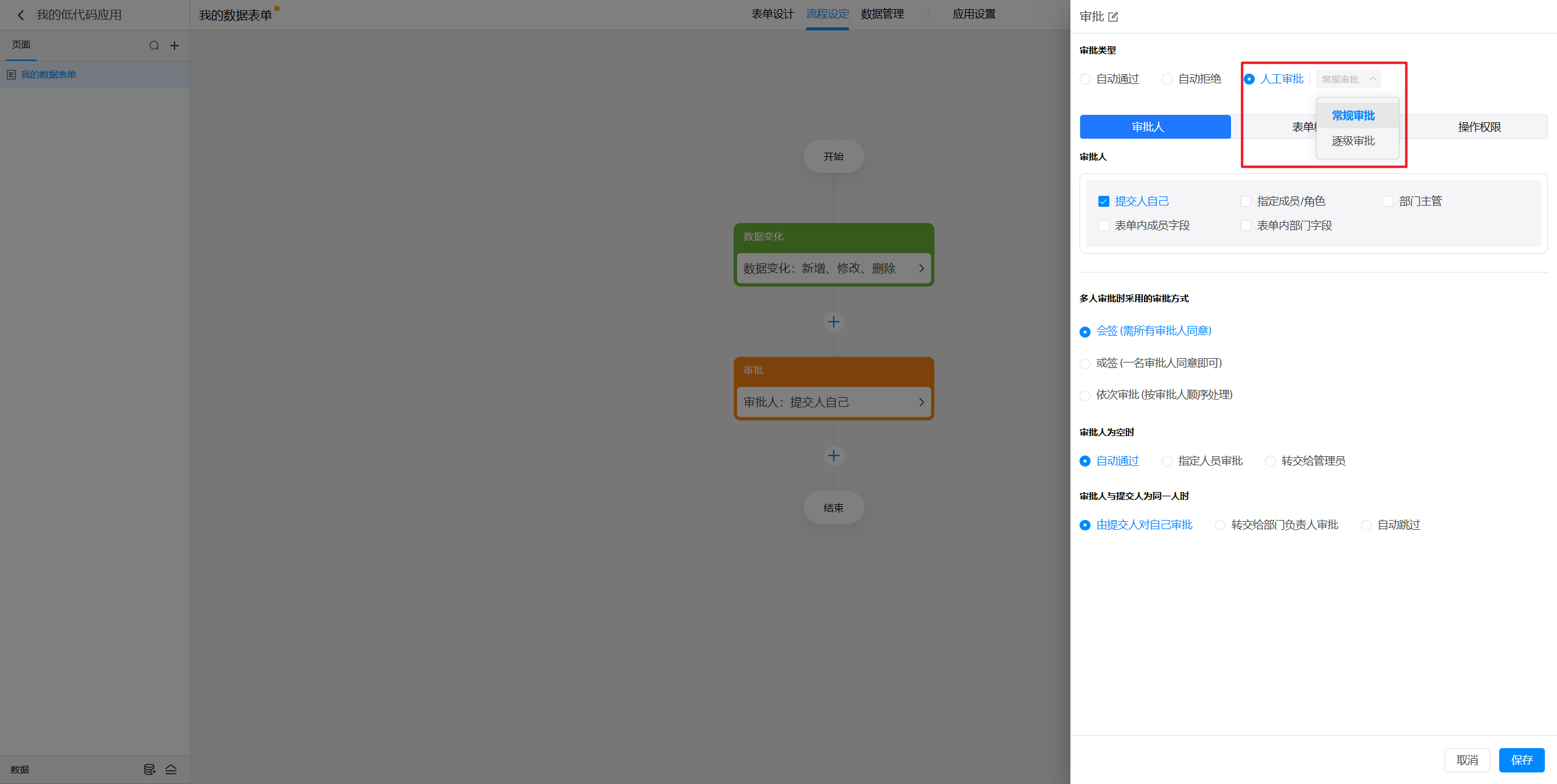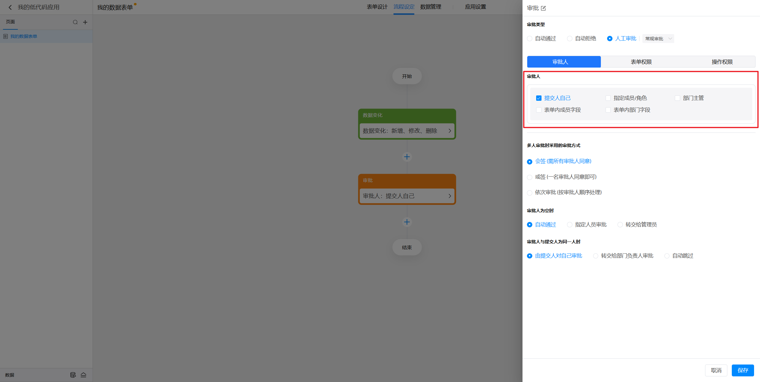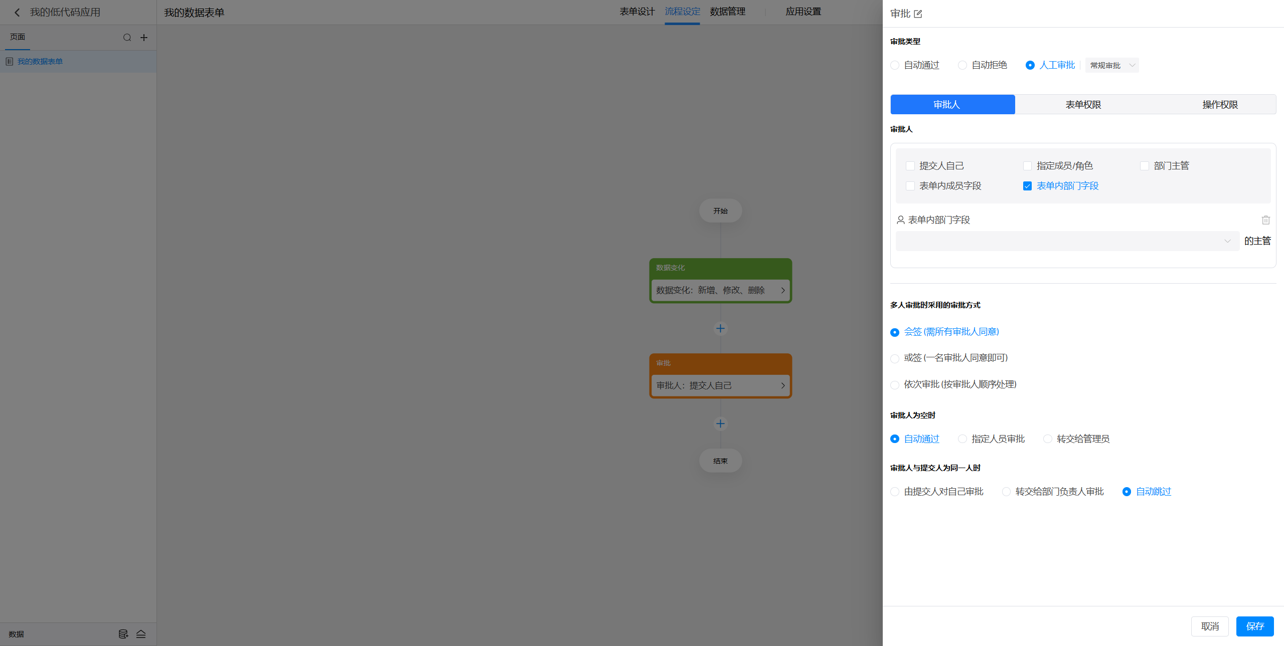 点击选中审批节点后,就可以在右侧对节点进行设置。
