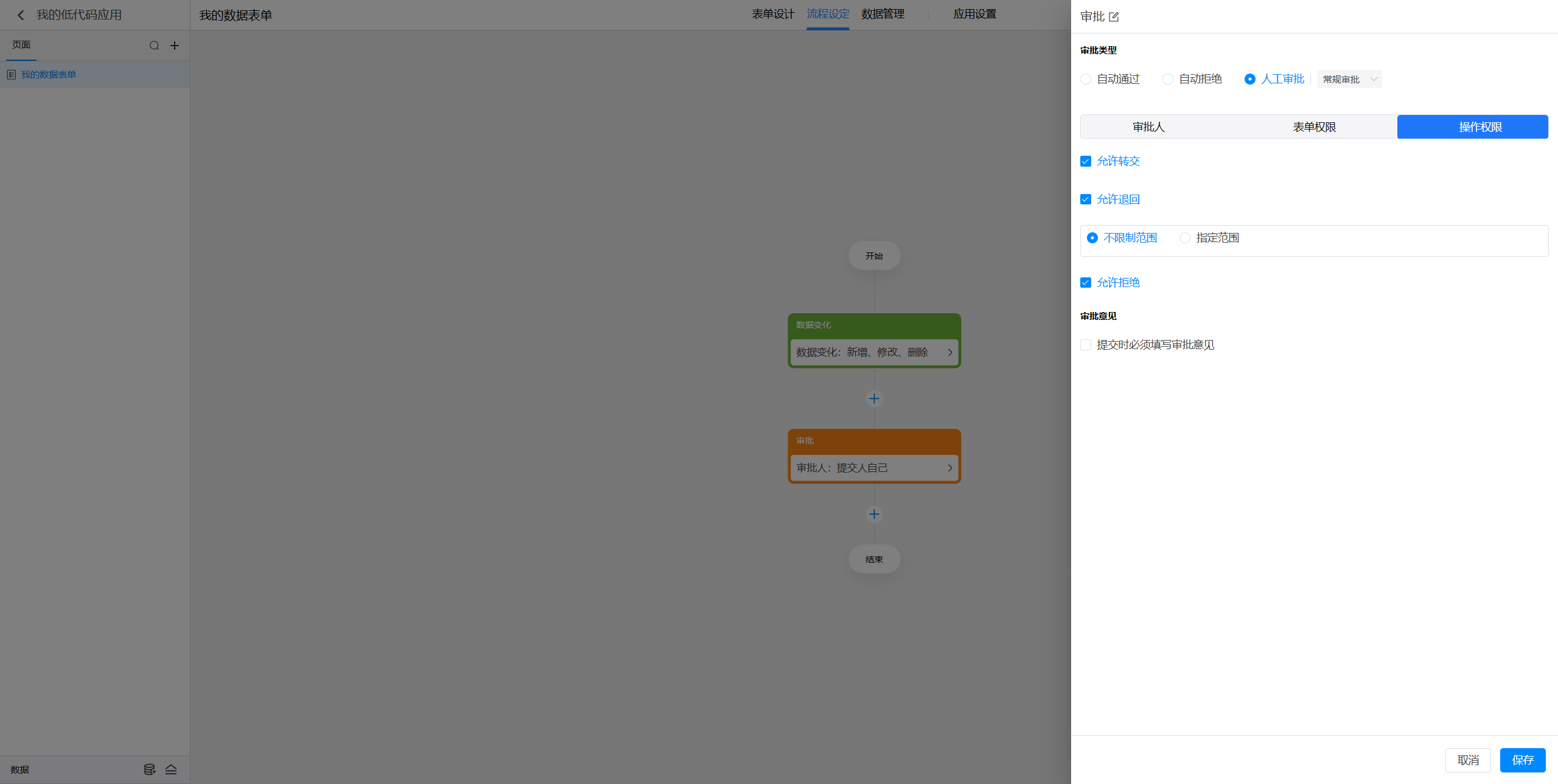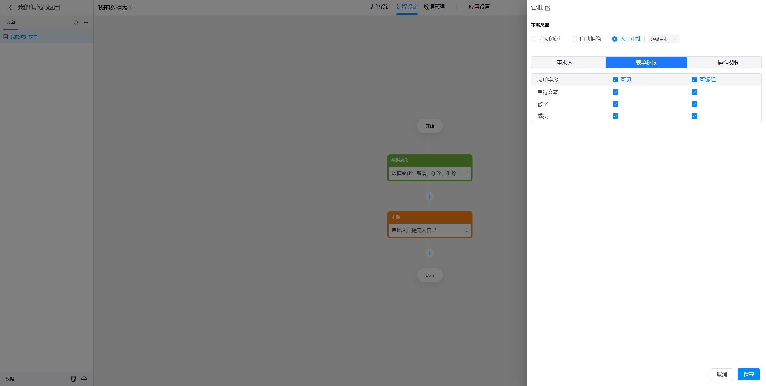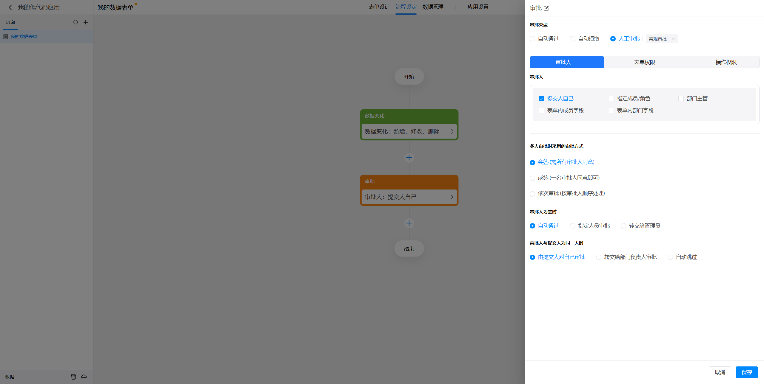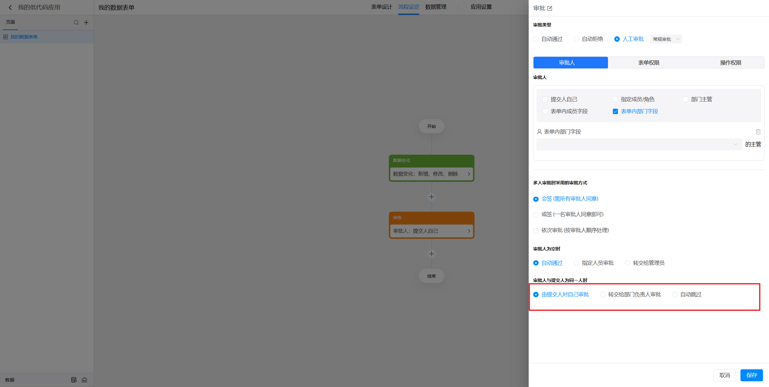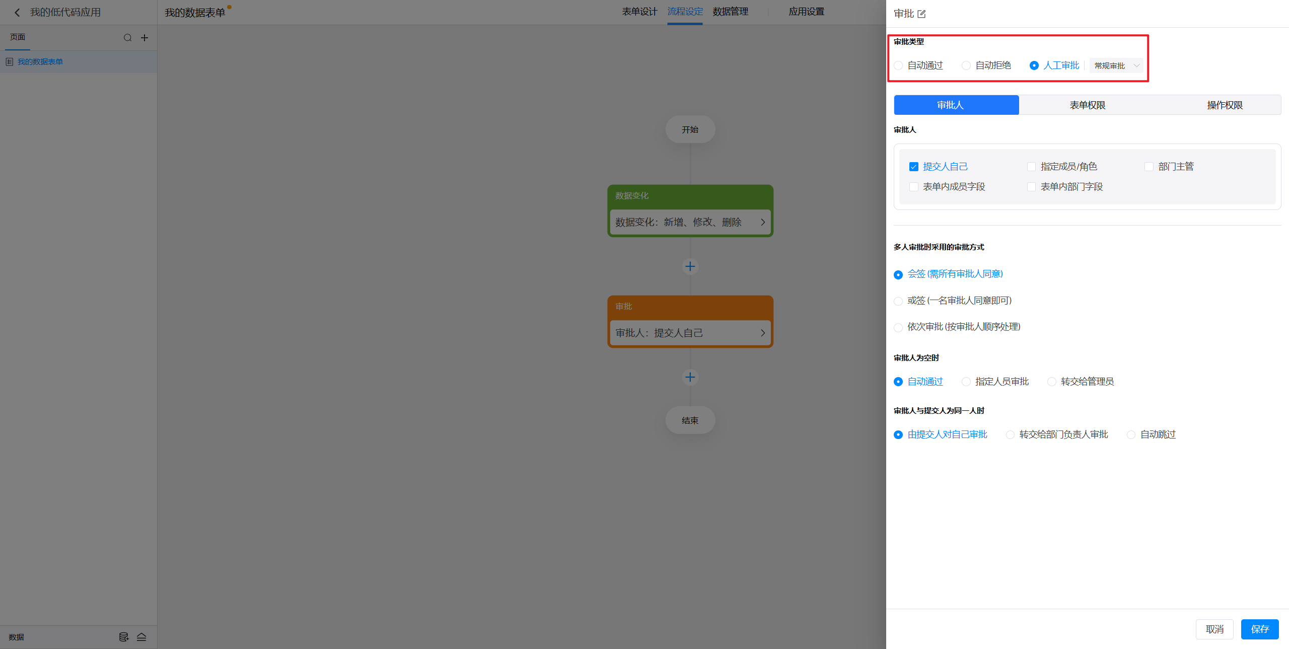 点击选中审批节点后,就可以在右侧对节点进行设置。