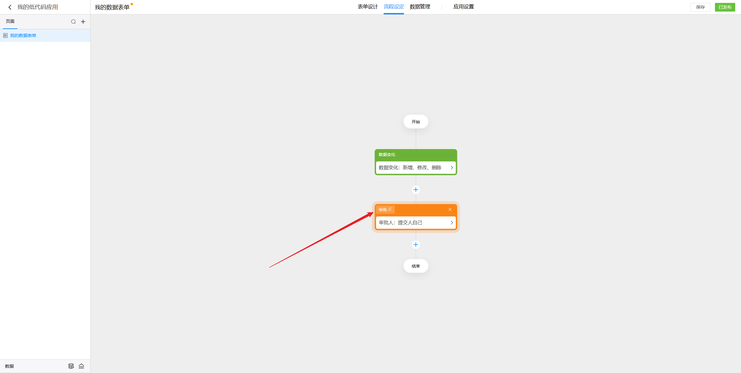 在添加触发节点后,就可以添加审批节点了。