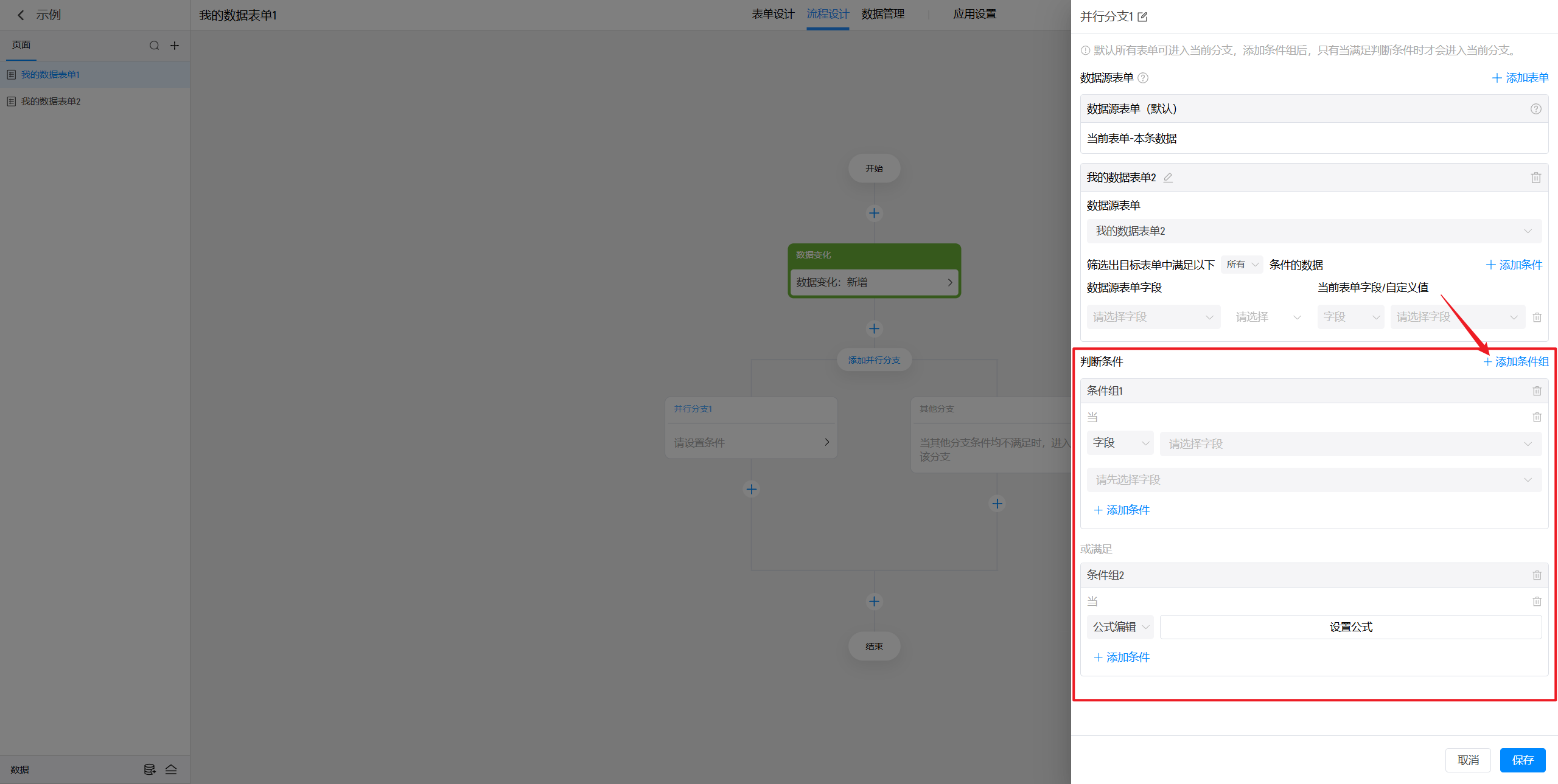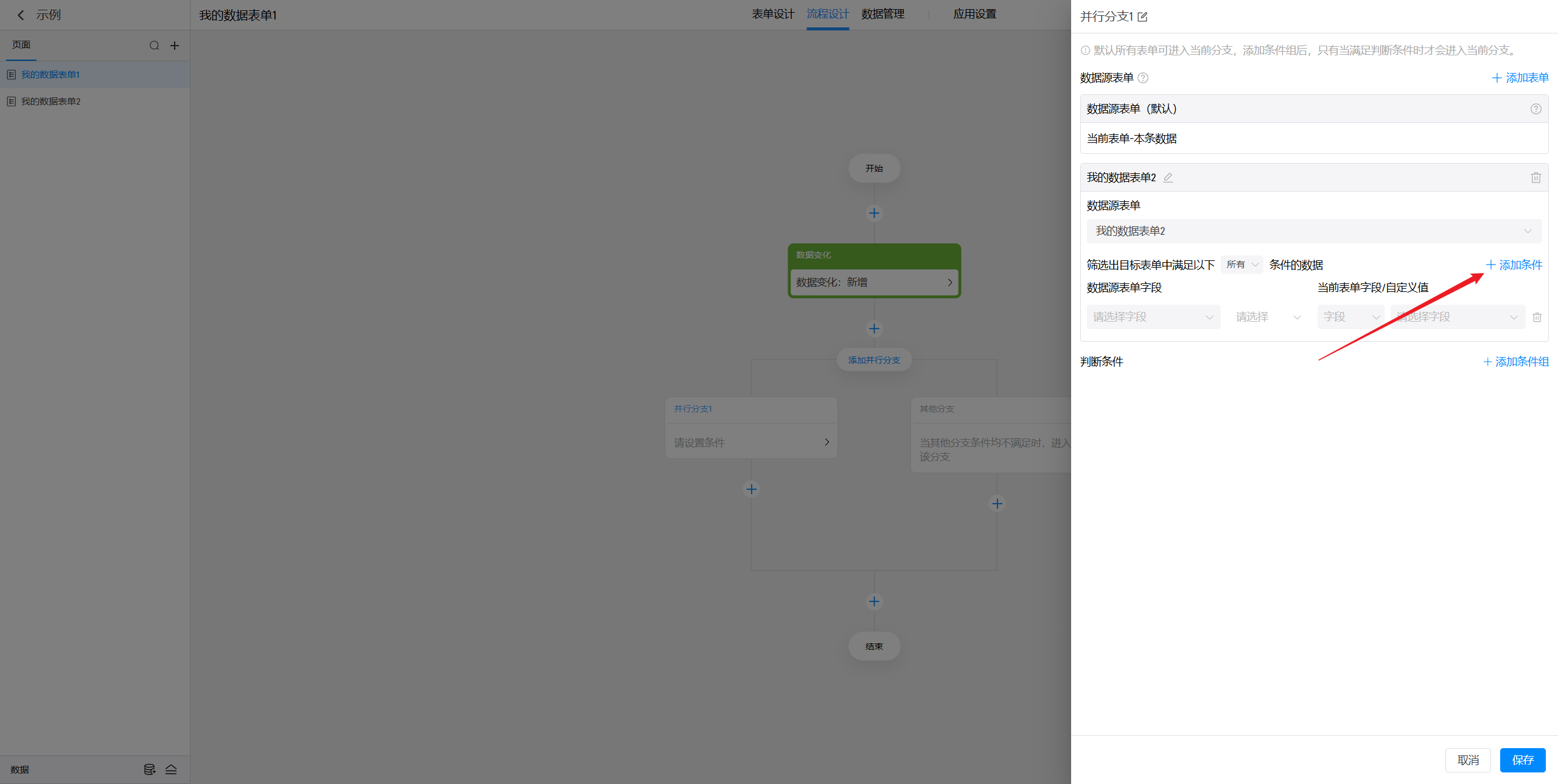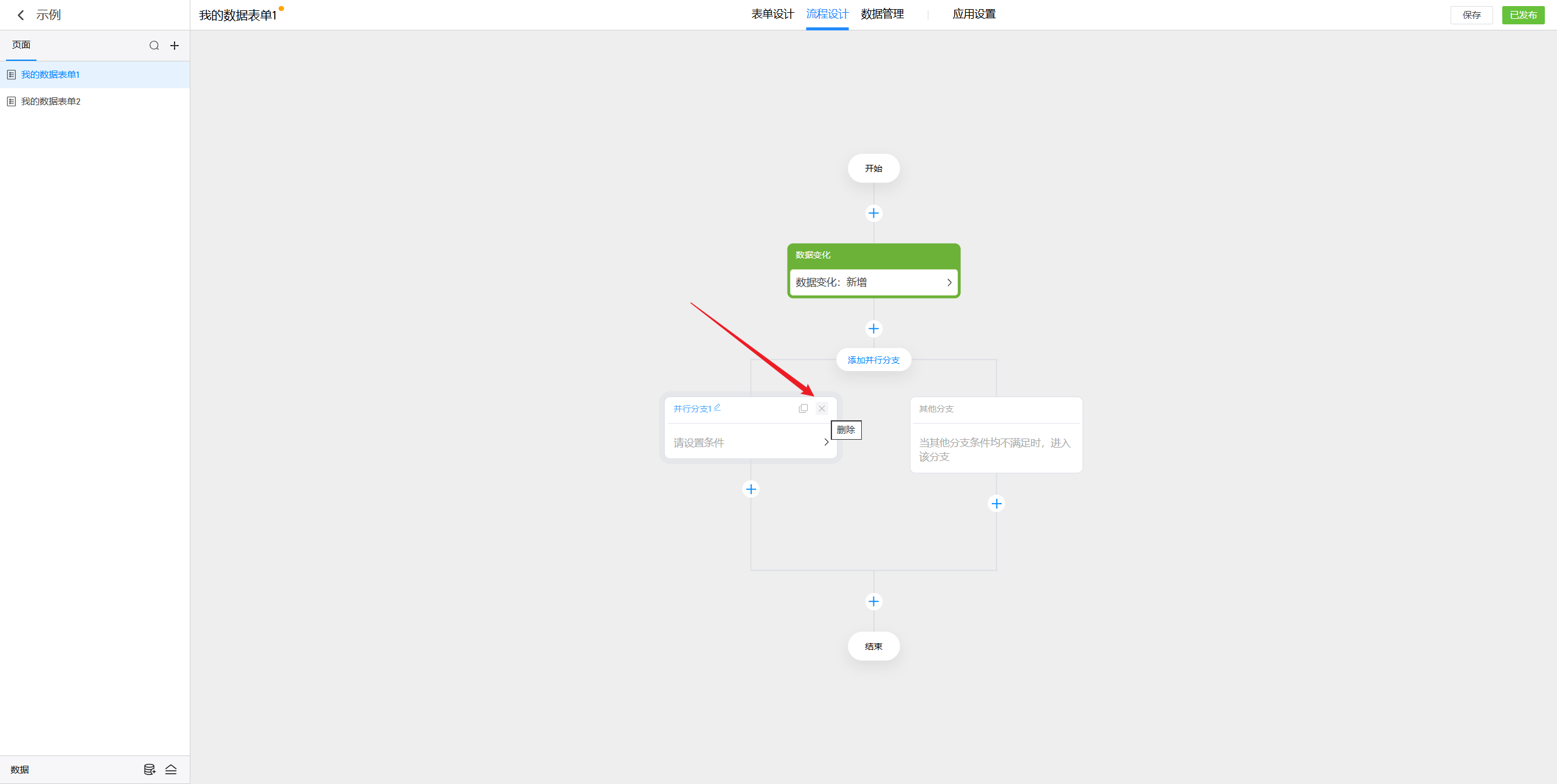 点击“添加并行分支”按钮可以添加新的并行分支。