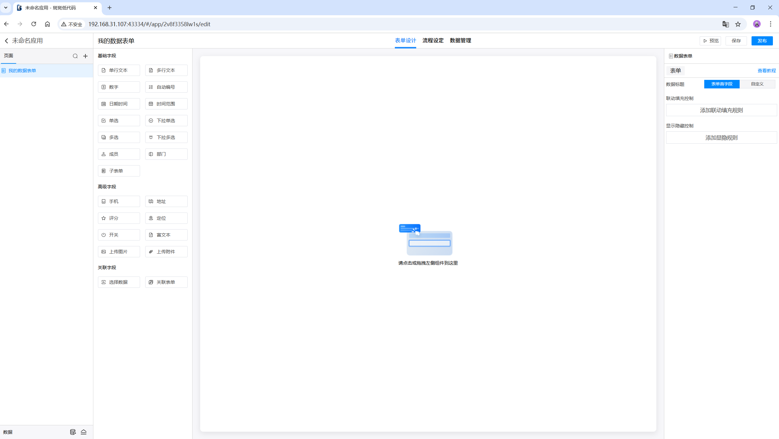 创建空白应用后,默认会创建一个新的空白数据表单。