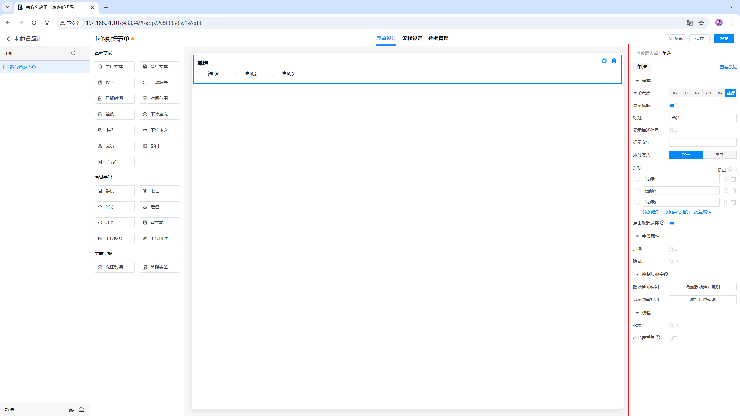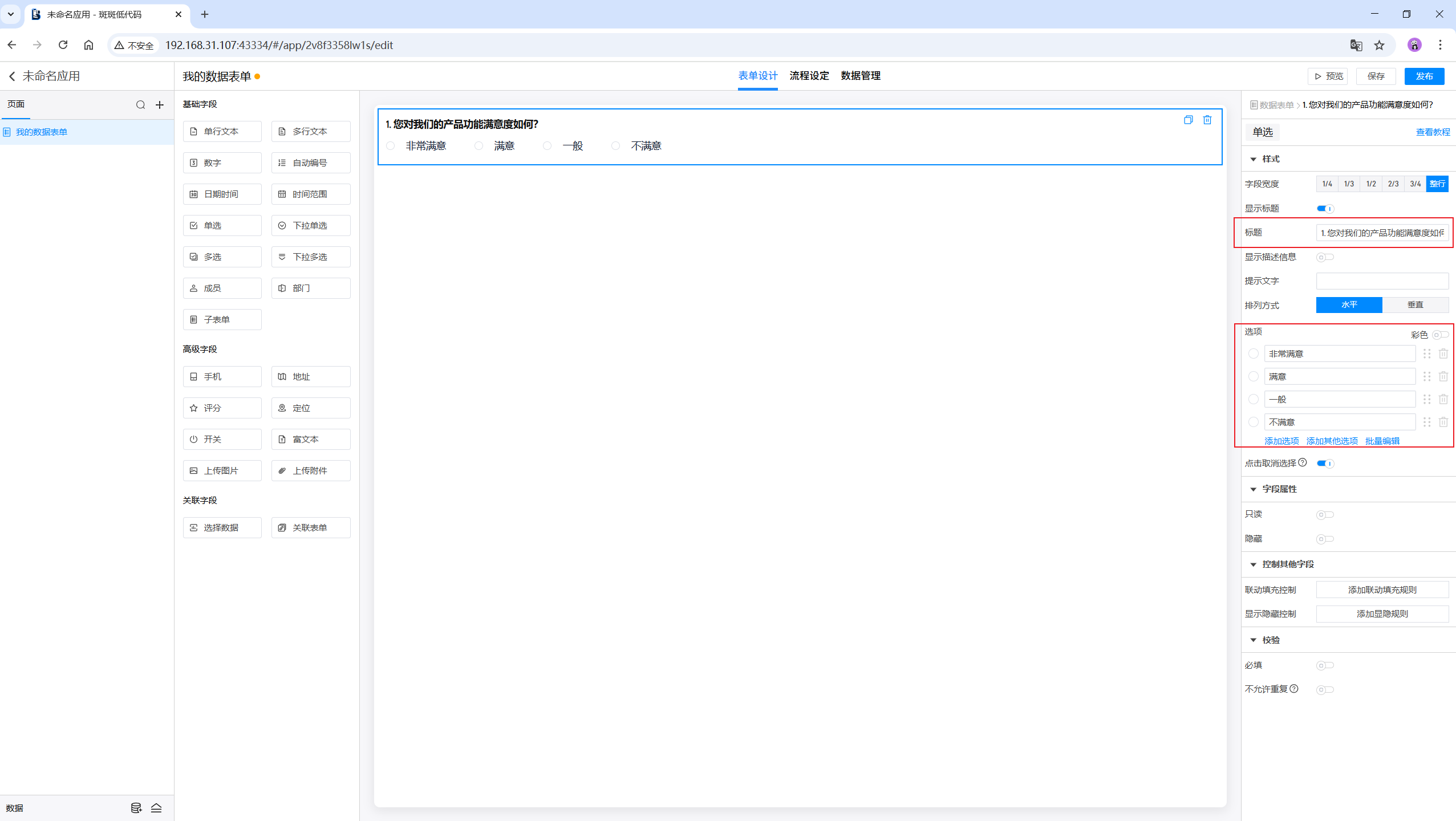 这里我们添加了一个单选字段,并且修改了标题和选项。