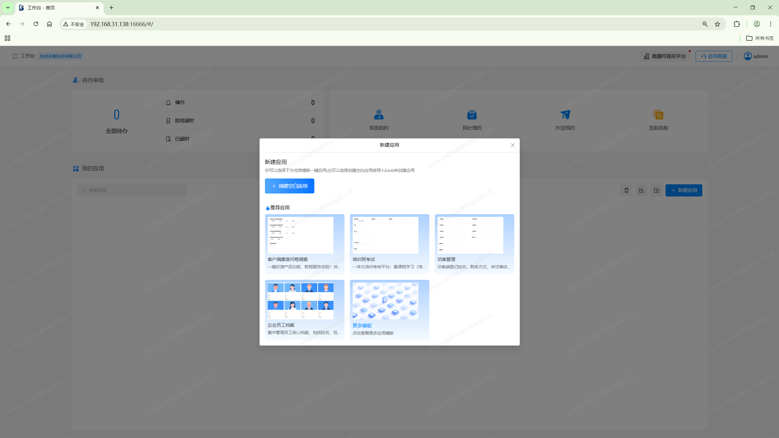 在工作台首页点击“新建应用”可以创建自己的应用。