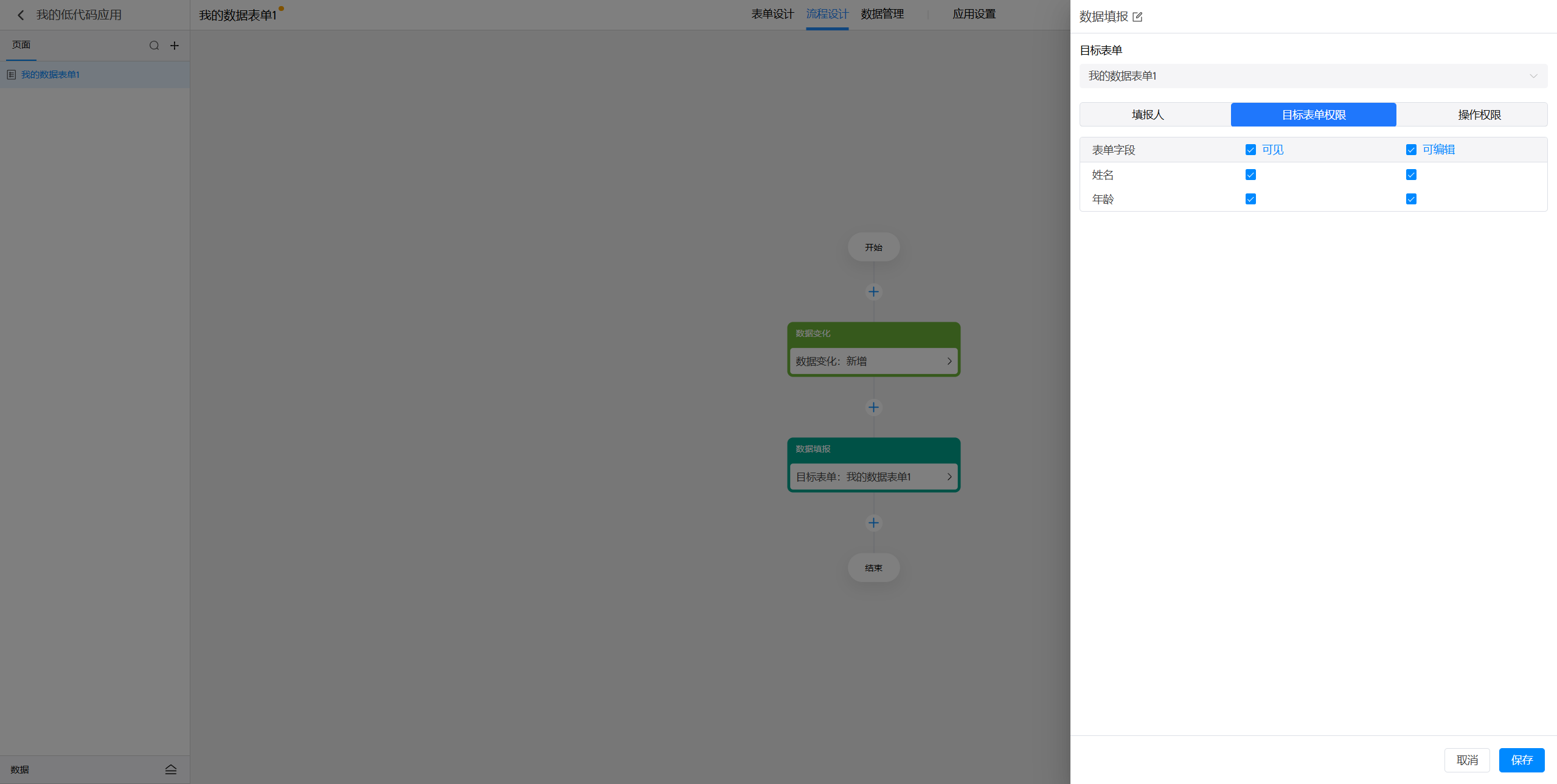 可见和可编辑对应的是当填报人打开待办时,在左侧表单窗口中是否可以看见字段和是否可以编辑字段。