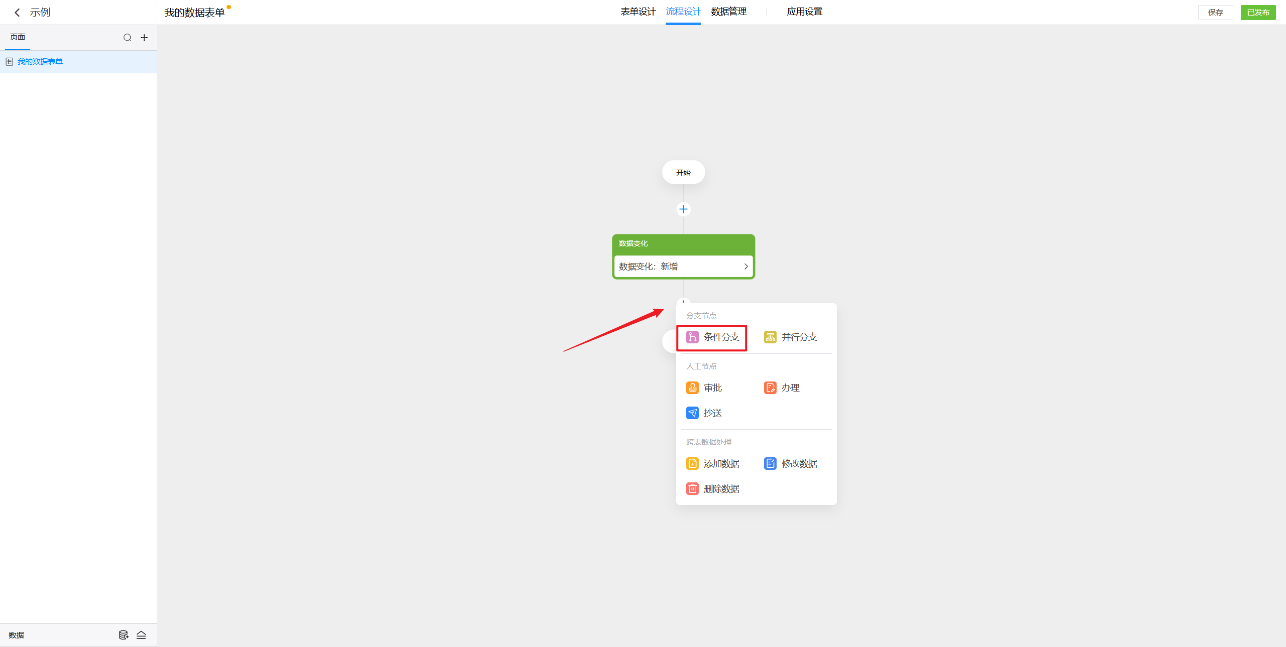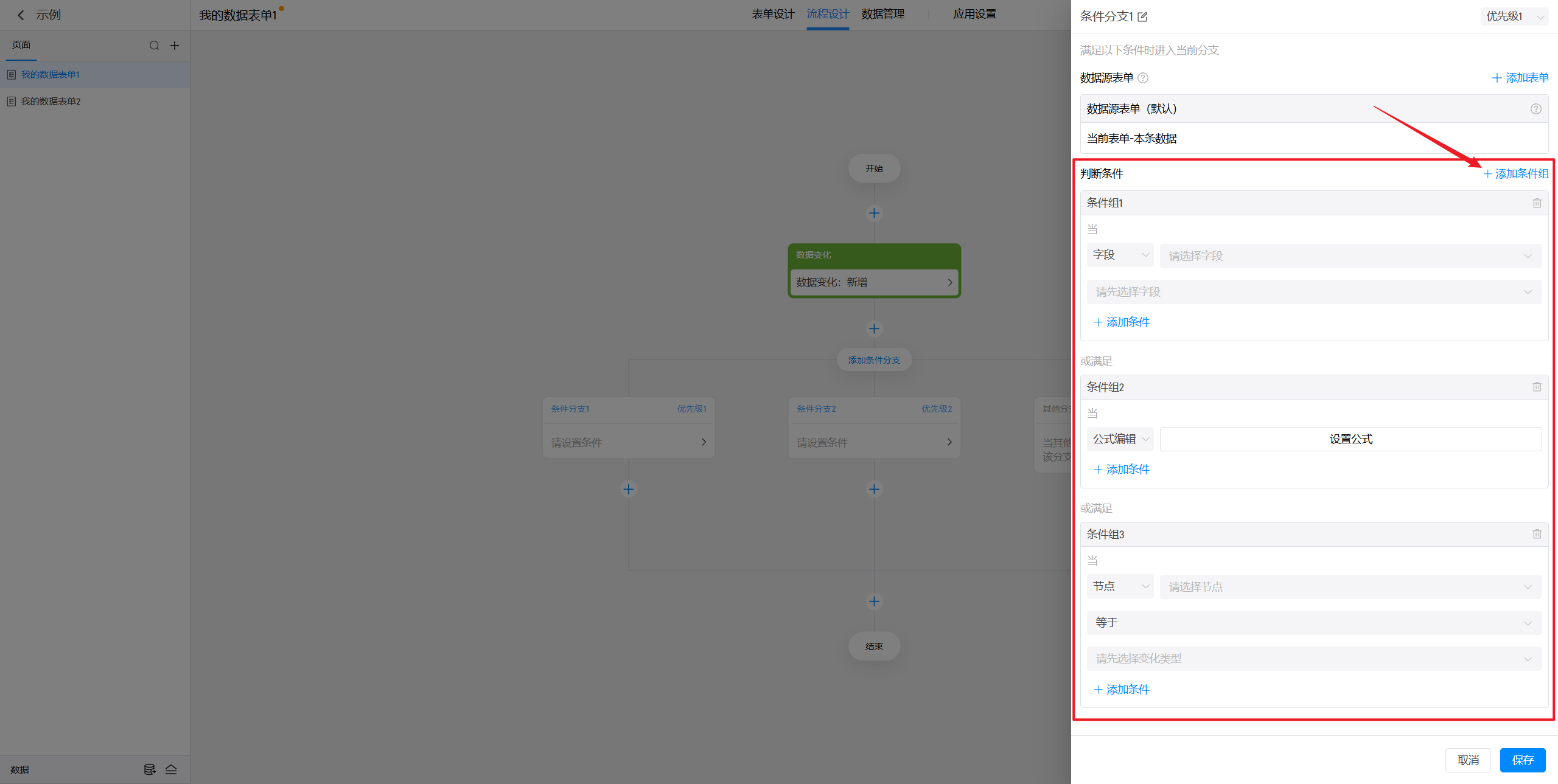点击“添加条件分支”按钮可以添加新的条件分支。