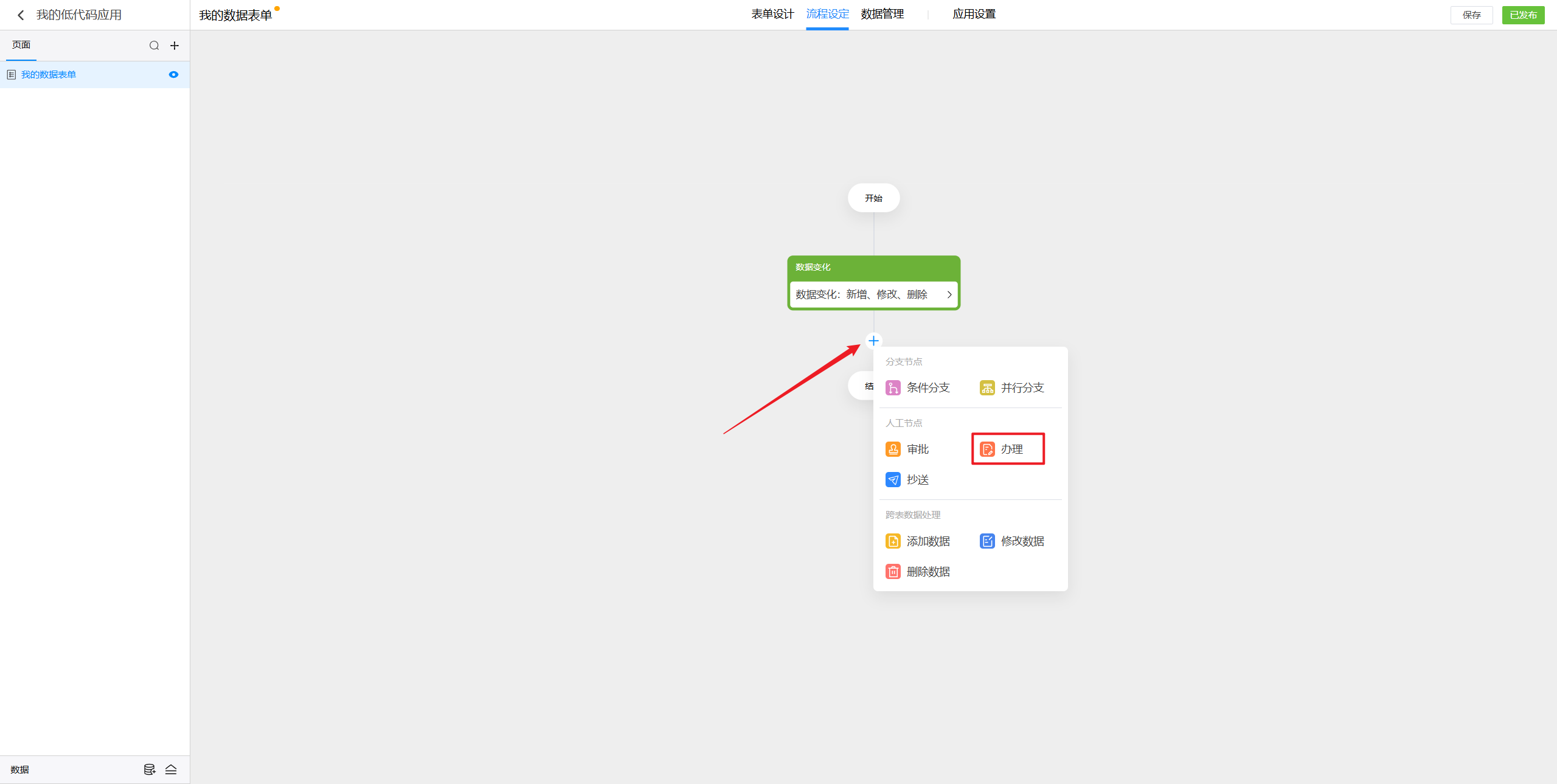 点击选中办理节点后,就可以在右侧对节点进行设置。