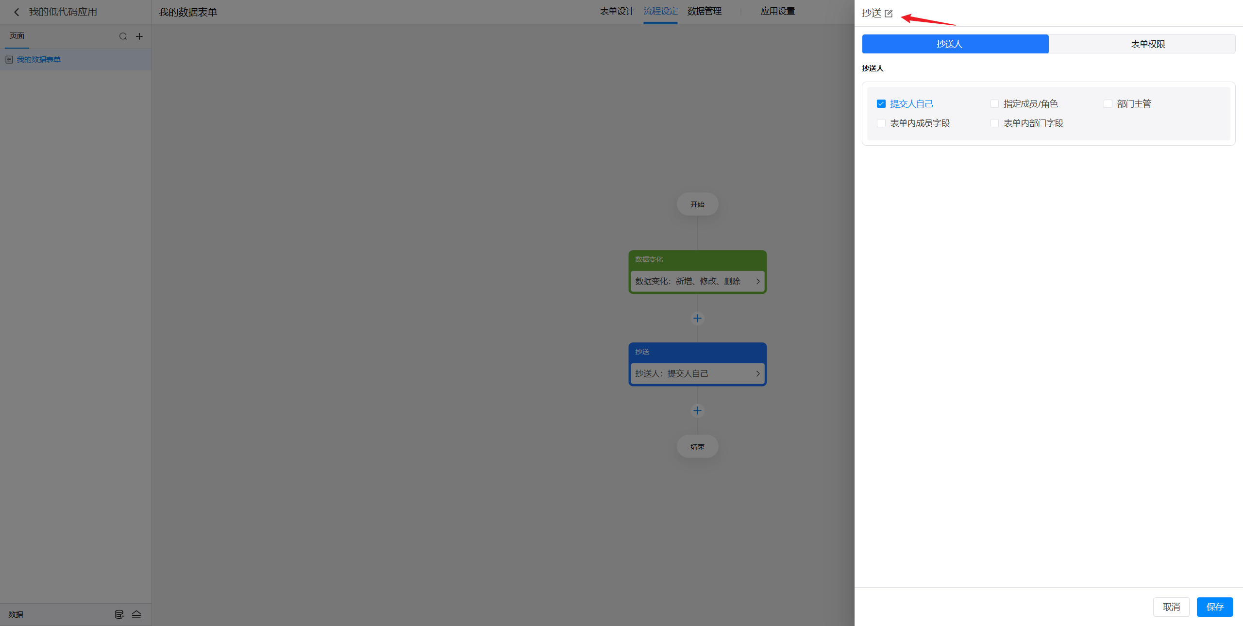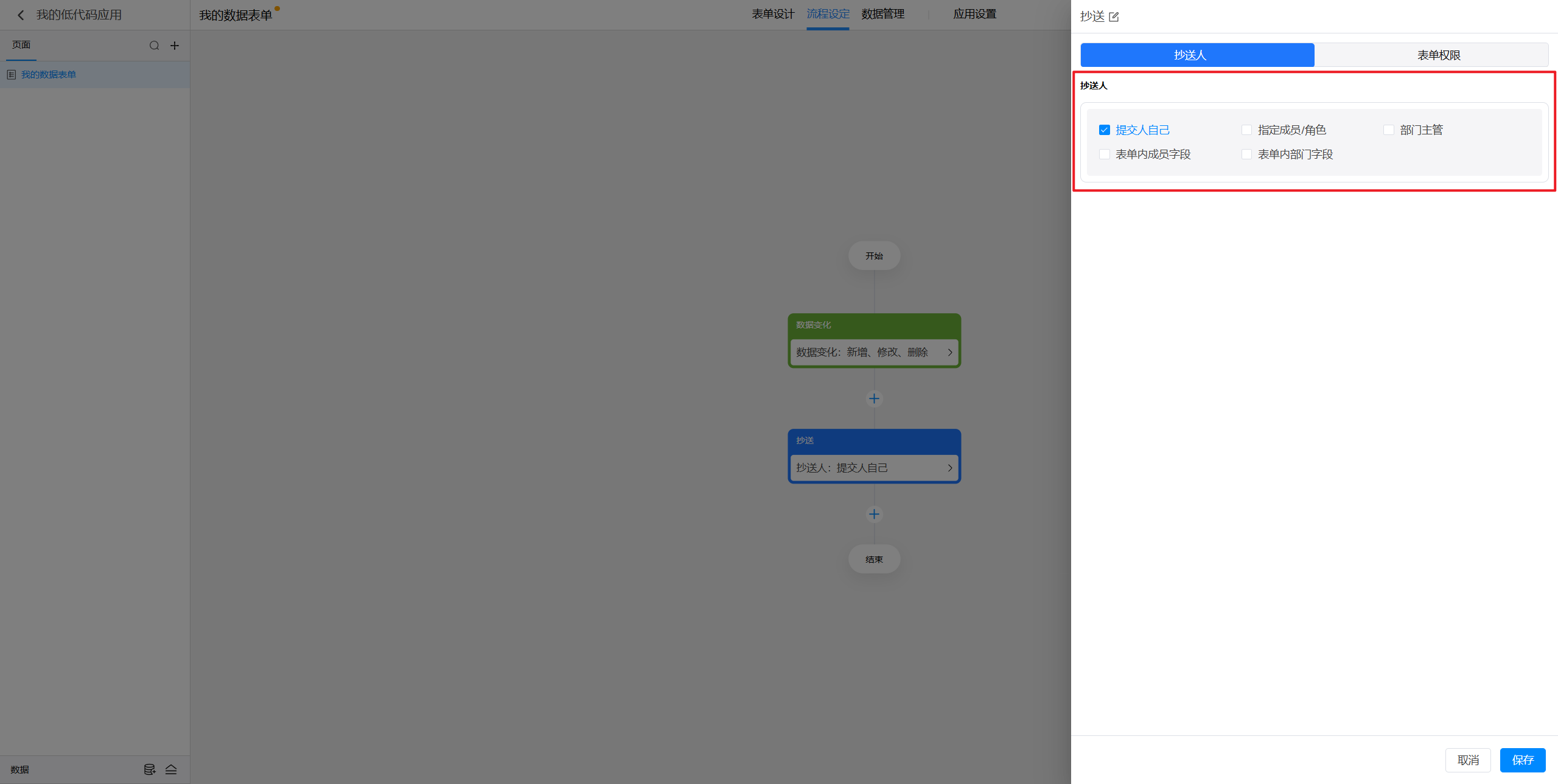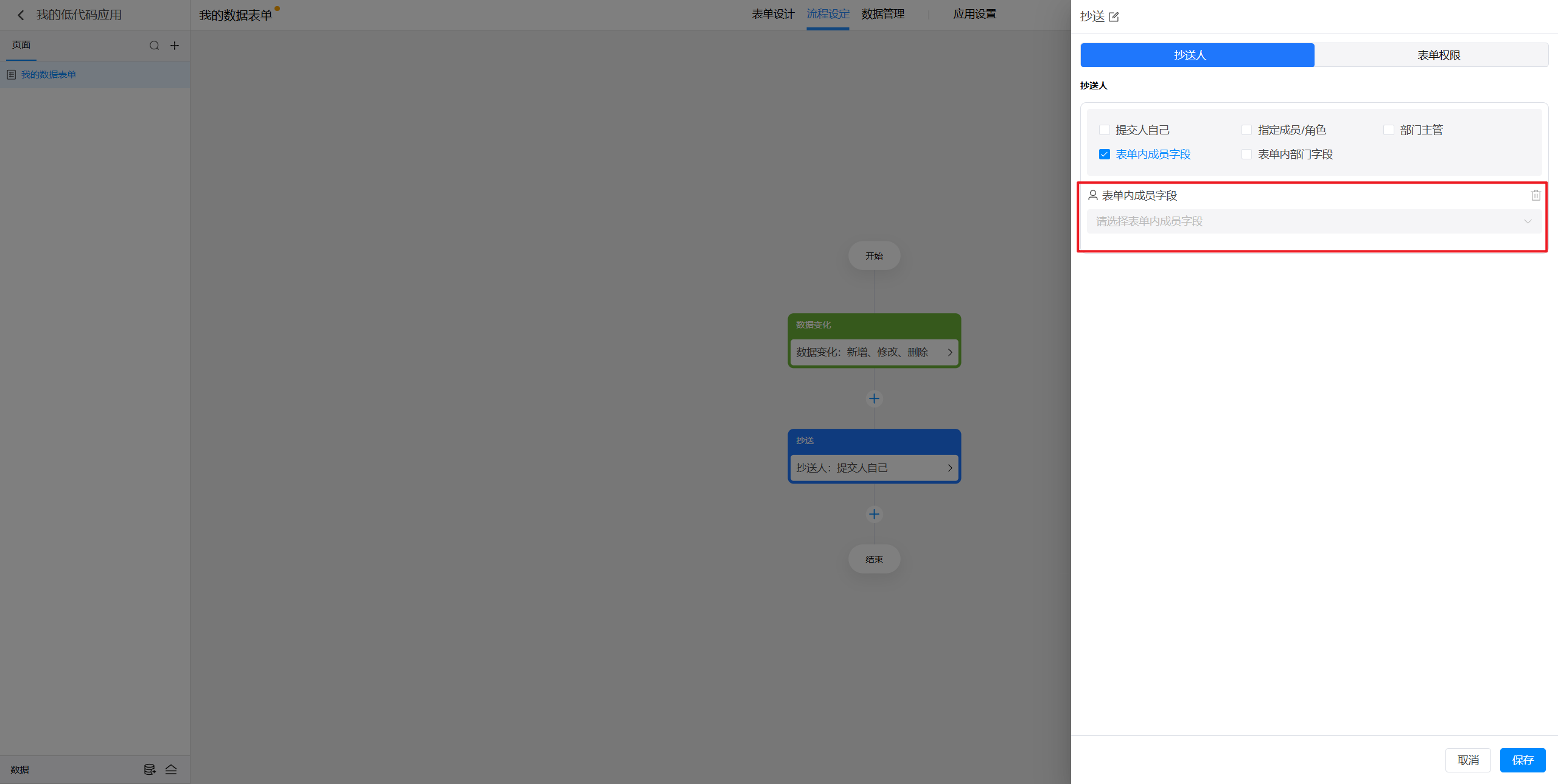 (4)表单内成员字段:指的是在当前表单中添加的某个成员字段所选择的成员进行抄送