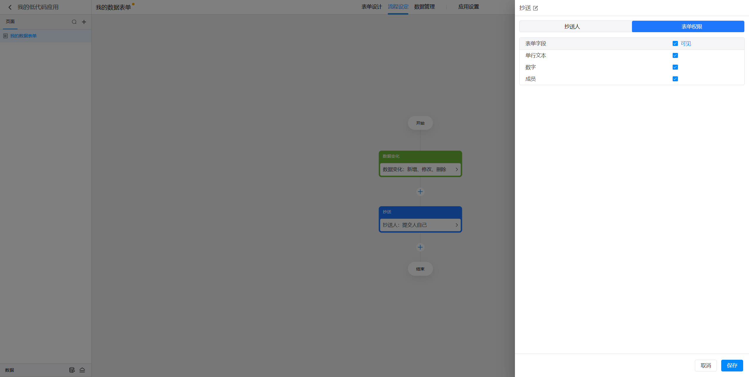 表单权限对应的是抄送时对表单中字段的可见权限。