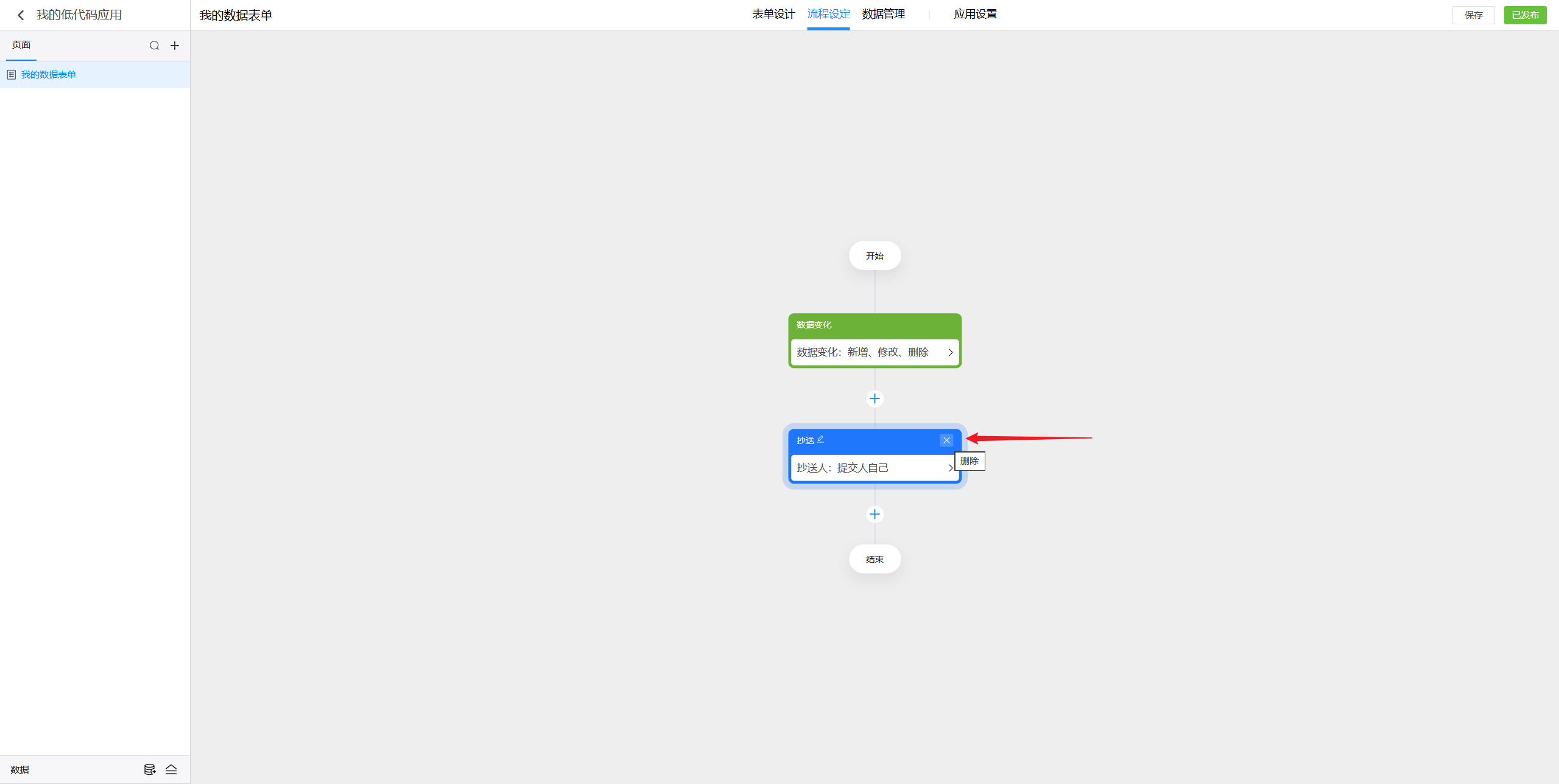 点击节点右上角可以删除当前节点。